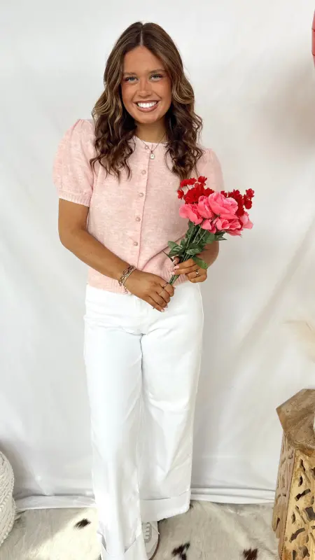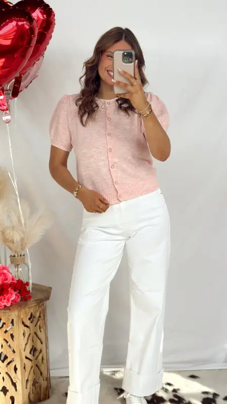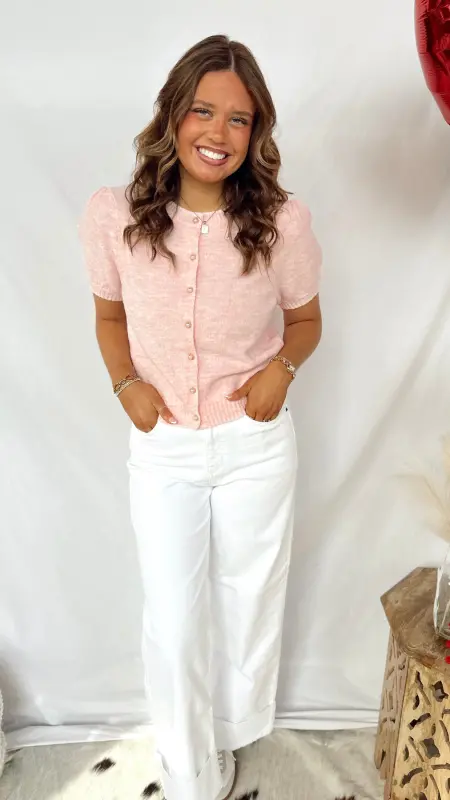 The Lovebug Top is your new go-to for effortless style. This light pink sweater features delicate pearl buttons that add a touch of elegance to any outfit. Perfect for layering or wearing solo, it’s soft, comfortable, and oh-so-charming. Whether you’re heading to brunch or a casual day out, this sweet top brings just the right amount of personality to your wardrobe.